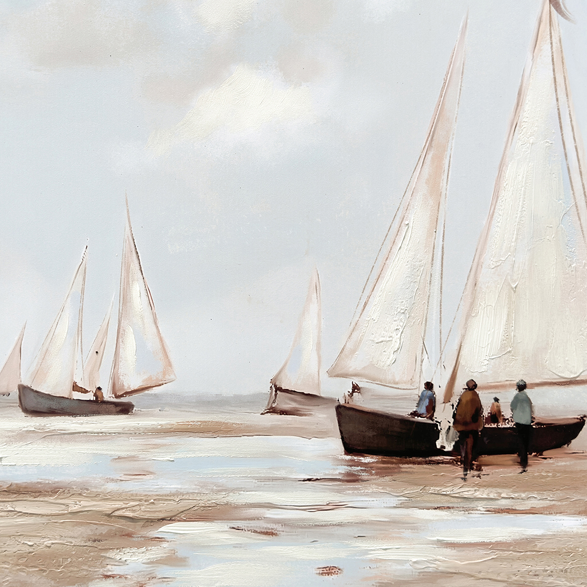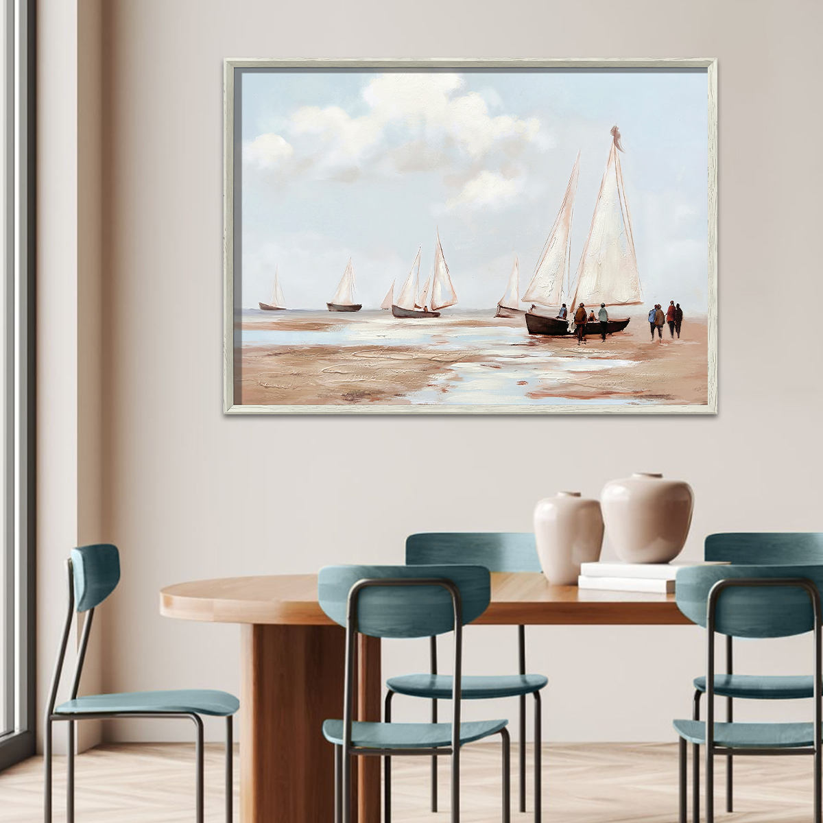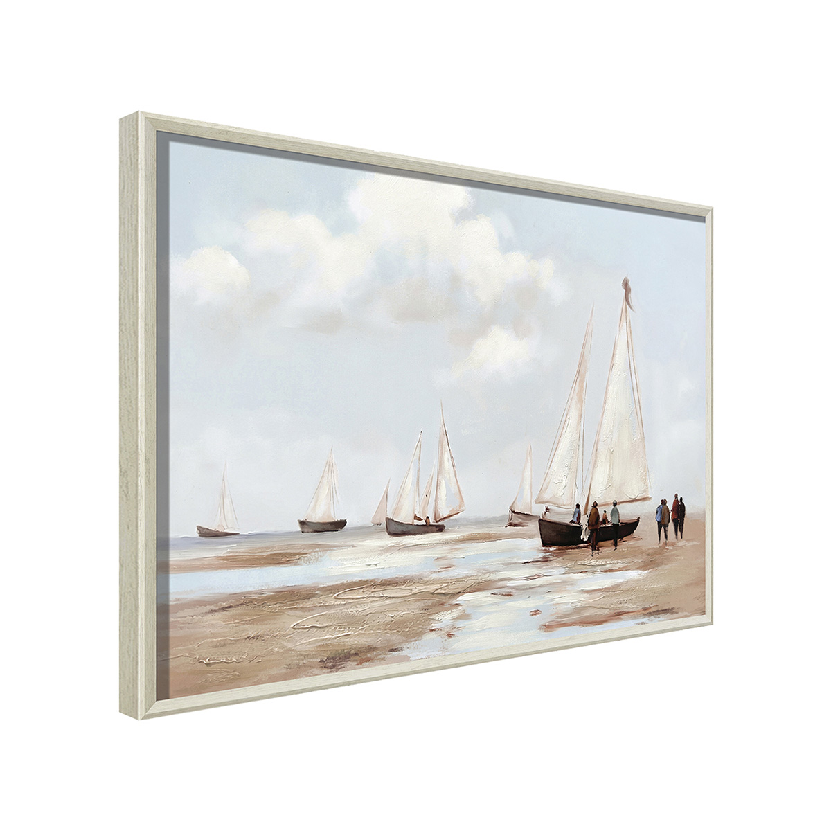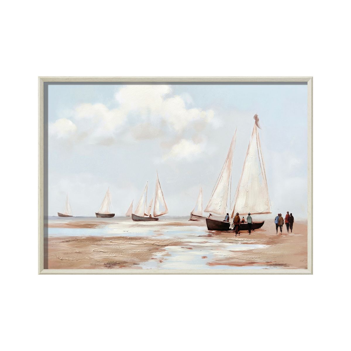 Cuadro La Bahia Canvas HD y pintado a mano Celeste/Beige marco Natural 70 x 50cm