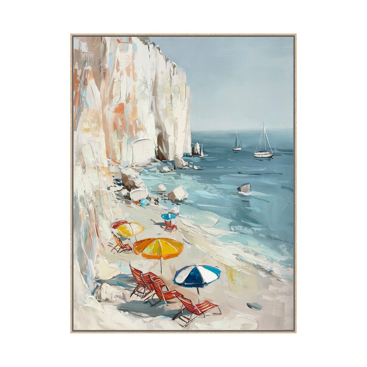 Pintado a mano sobre canvas HD, “La Playa” transmite serenidad a través de tonos celeste y beige que evocan el encuentro entre cielo, arena y mar. Su marco en tono caramelo aporta calidez y profundidad, convirtiéndolo en una pieza ideal para espacios luminosos, costeros o de estilo relajado y orgánico.