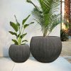 Con su forma redonda y acabado negro mate, el macetero Belgrado ofrece una estética sobria y moderna. Fabricado en poliresina, es resistente, liviano y apto para uso interior o exterior. Su formato amplio y bajo lo hace ideal para plantas frondosas o composiciones vegetales que buscan protagonismo sin altura excesiva.
