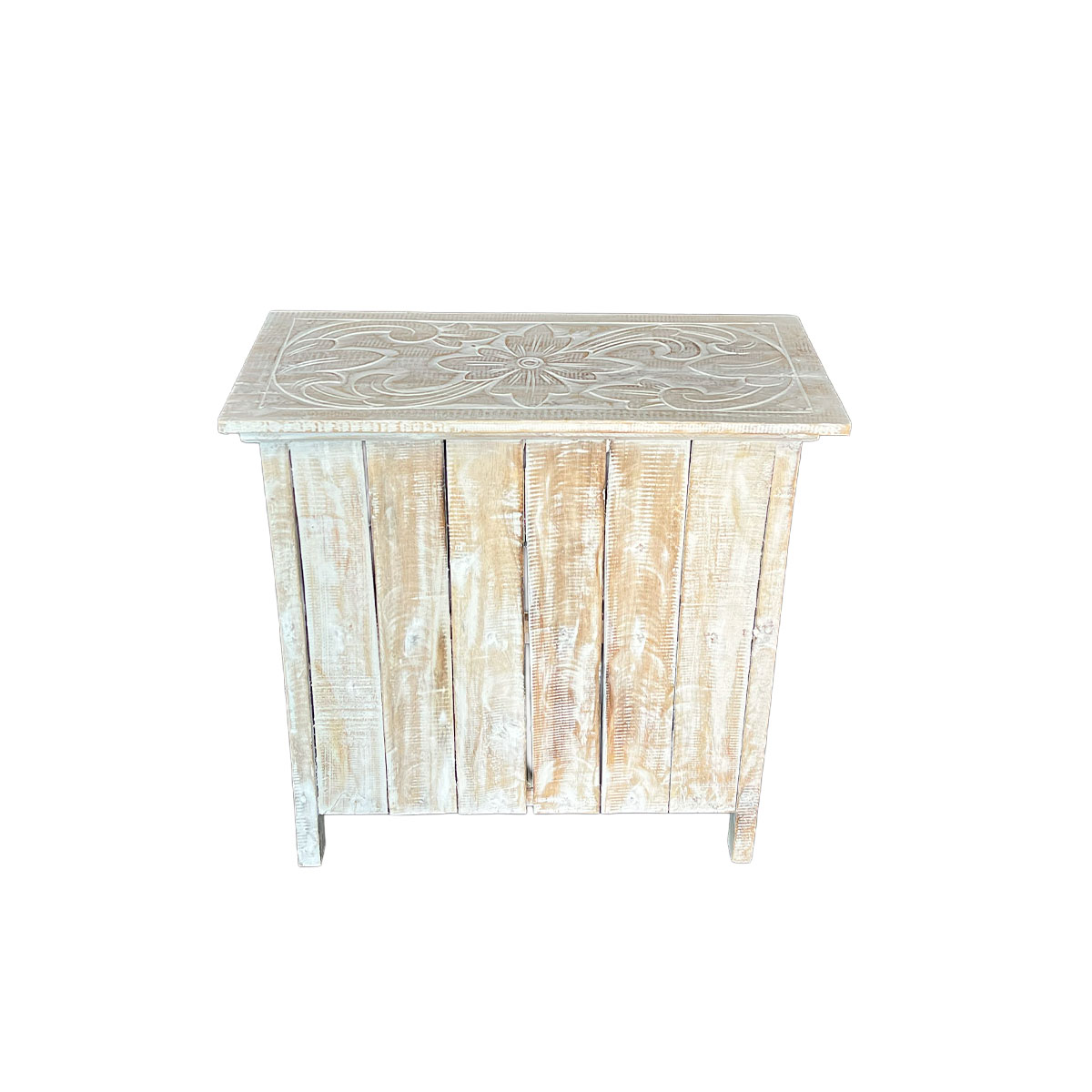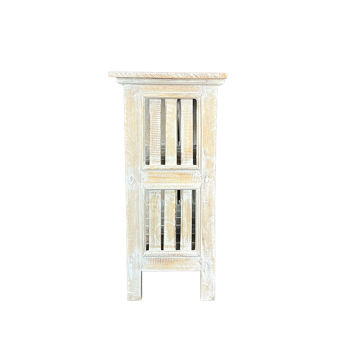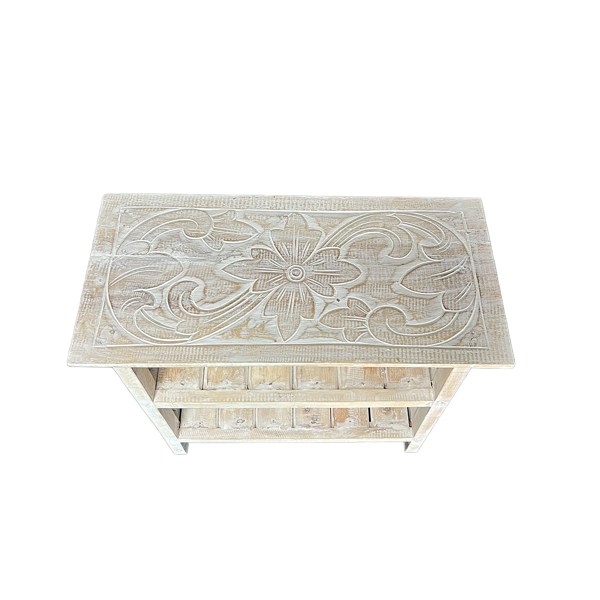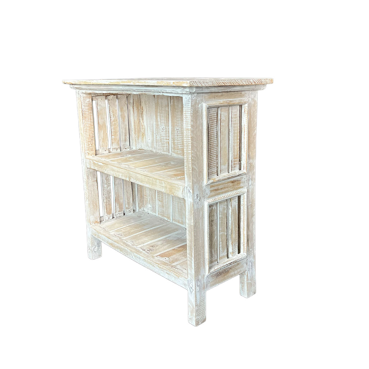 Mesa Lateral Acadio – Madera Blanca con 3 Repisas.