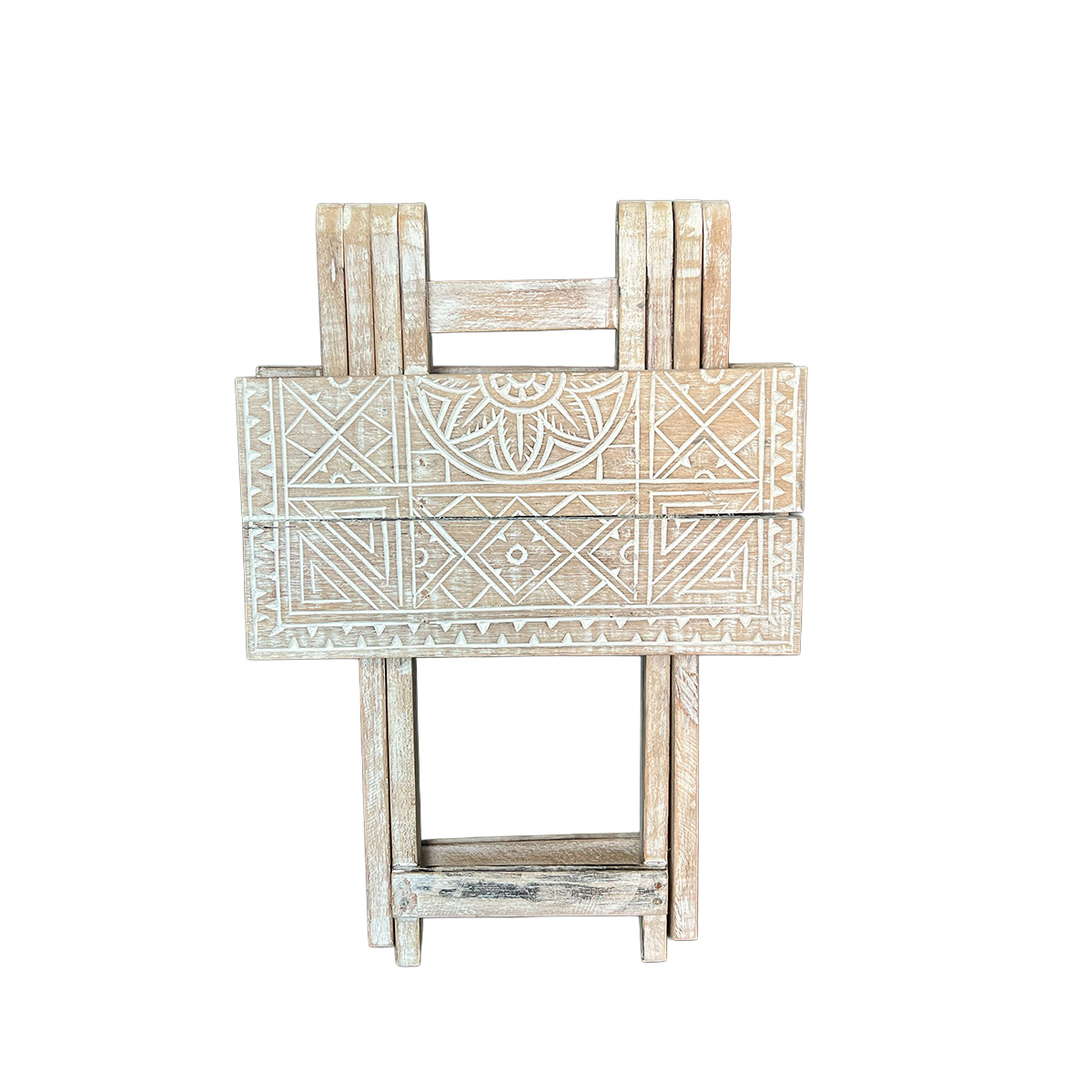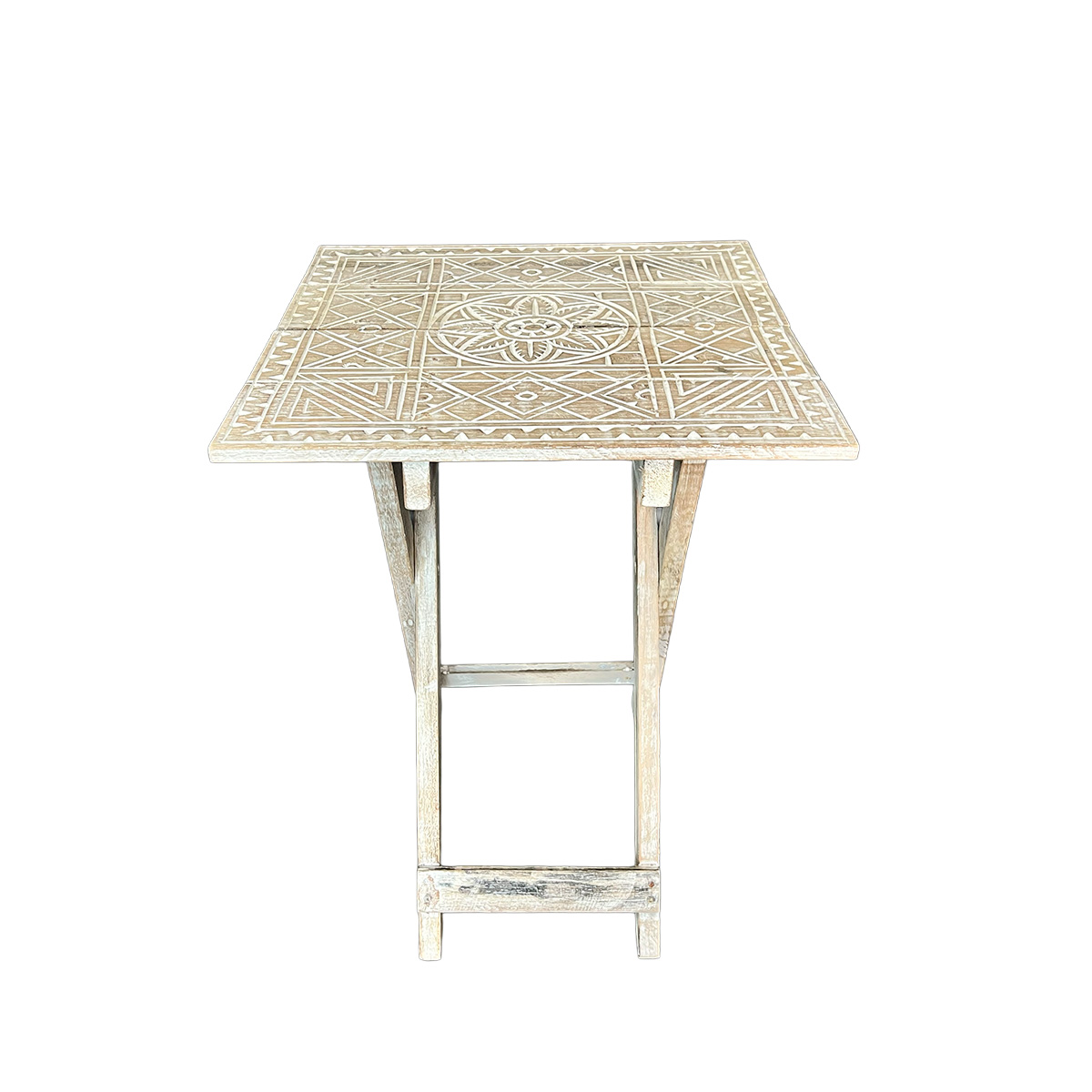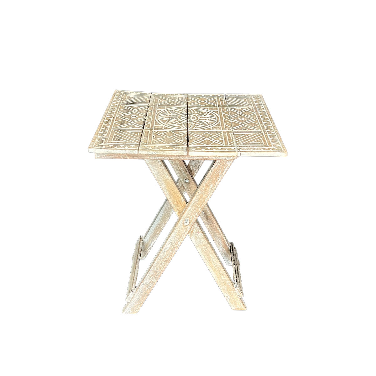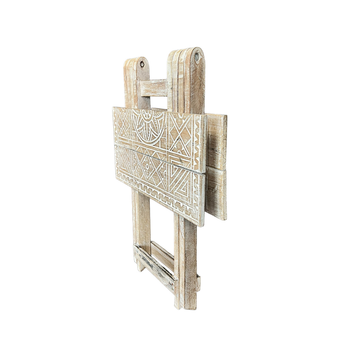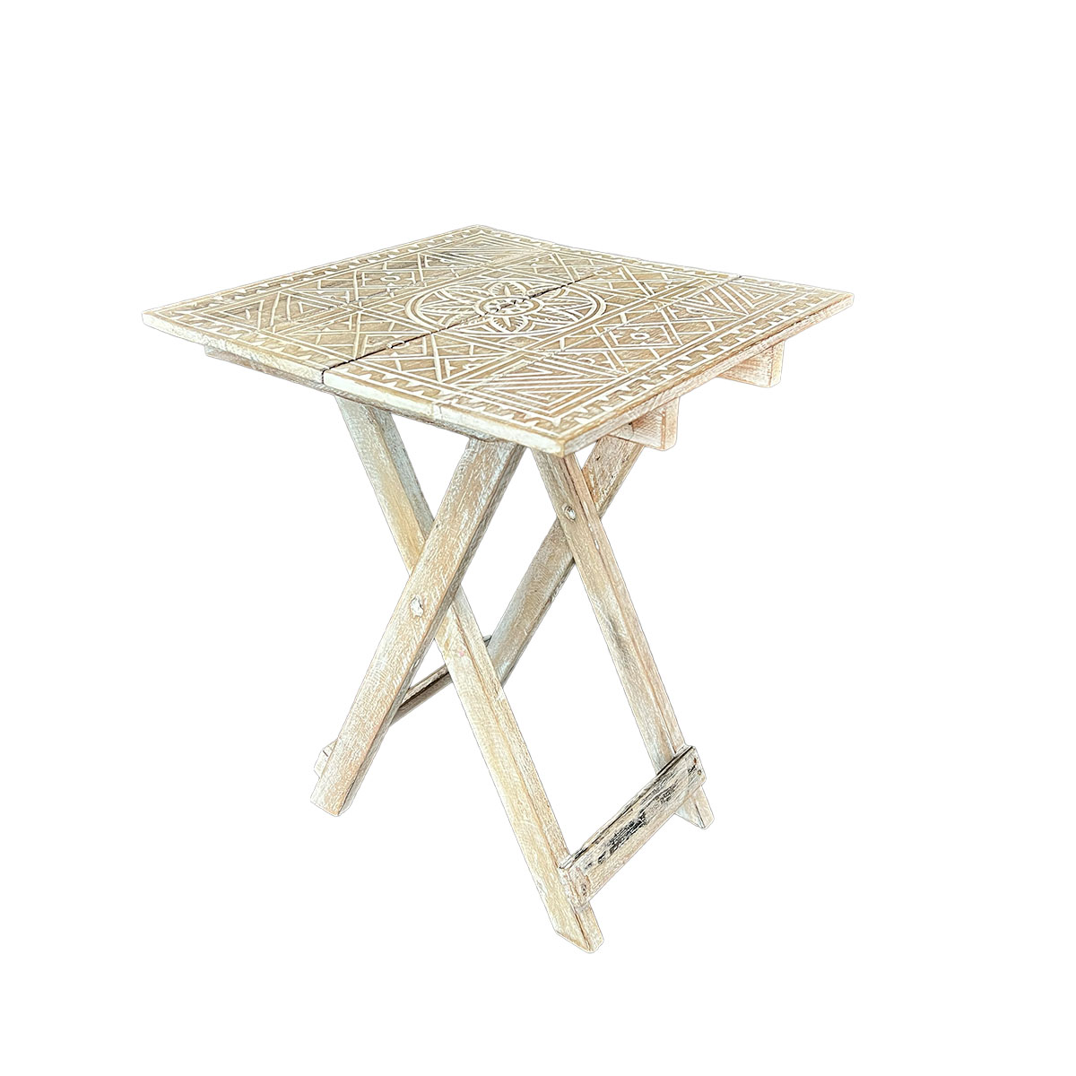 Mesa lateral Sargón plegable en madera albayalde. Práctica, ligera y elegante, ideal para livings y dormitorios.