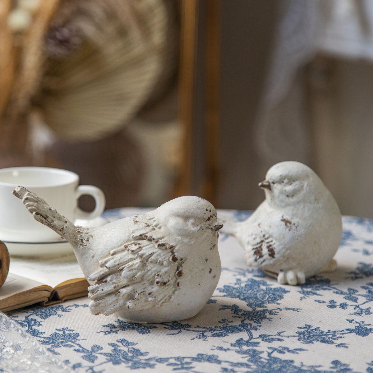 El set de pájaros Alondra destaca por su delicado diseño en fierro blanco, que aporta un aire romántico y liviano a cualquier espacio. Sus líneas suaves y acabado luminoso los convierten en un complemento perfecto para repisas, mesas auxiliares o vitrinas decorativas.