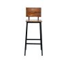 Silla de Bar estilo industrial con estructura metálica, asiento y respaldo elaborado en madera de Mango. La combinación de materiales y acabado en líneas simples de este piso entrega carácter a los espacios. Altura de Piso a asiento 81 cm.
